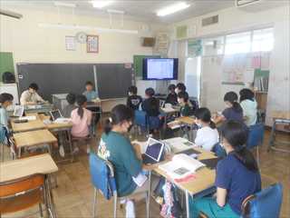 左から3年生「初めての習字」、5年生「話合い活動」、6年生「国語」の様子です。