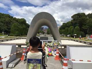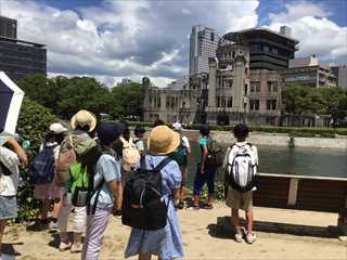 広島平和資料館や原爆ドームを見学したことや式典に参加したこと、全校で取り組んだ折り鶴を届けたことなどを伝えました。