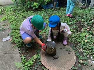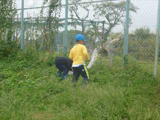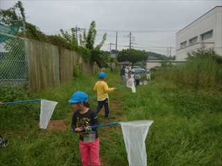 1年生が生活科の学習で、学校の隣にある畑の周りの草むらで、虫とりをしました。