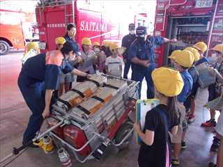 間近に見る消防車や素早い動きで救助を行う消防隊員の様子などを見学し、自分たちの生活が守られていることを知ることができました。