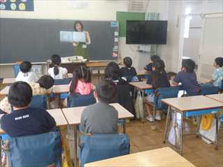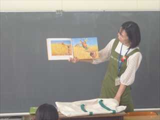 今日は、こども図書館の方に来校いただき、図書館の使い方や大型絵本の読み聞かせなどをしてもらいました。