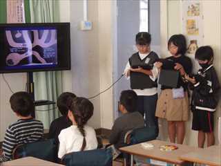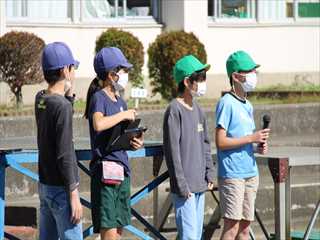 8月6日、広島平和記念式典に参加した児童から、全校児童への報告会が行われました。