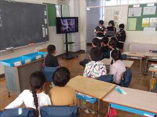 3年生が、1年生に絵本の読み聞かせをしてくれています。