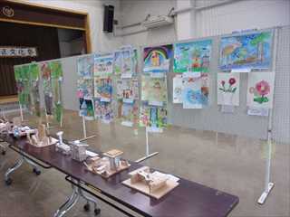 21日、22日に、精明地区行政センターで文化祭が開催されました。精明小学校児童の絵画や立体の作品が展示され、多くの方に観ていただくことができました。