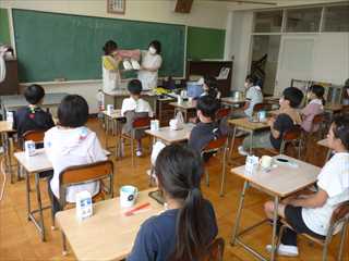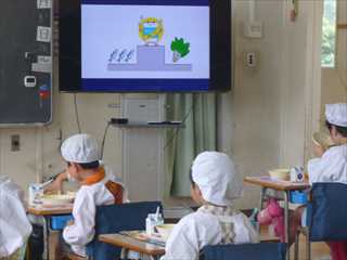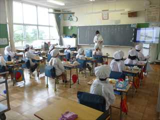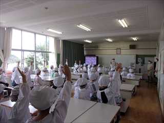 今日は、栄養教諭の先生が来校し、牛乳のお話しをしてくれました。特別映像として、牛乳工場の様子を見せてもらいました。栄養満点の牛乳は、衛生面に細心の注意を払いながら作られ、学校に届けられています。
