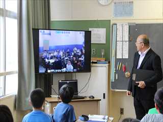 市制70周年記念事業として、市内各小学校の6年生代表児童が8月の平和記念式典に派遣されます。その事前学習として、広島平和記念資料館によるオンライン授業がありました。