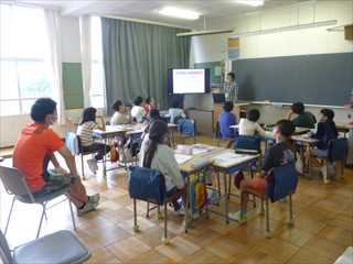 世界の小学生がどんな学校生活を送っているのか、3名のゲストティーチャーが話をしてくれました。