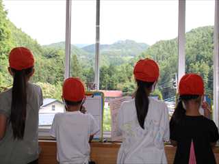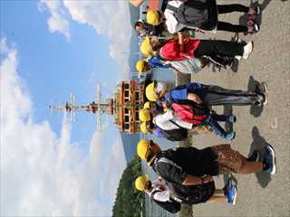 午後は天覧山から市内の様子を見学する予定でしたが、急な降雨のため、美杉台のあさひ山展望台からの見学に変更しました。