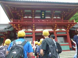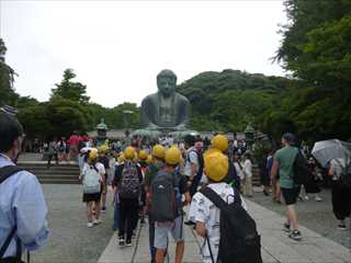 1日目は、鎌倉の鶴岡八幡宮、鎌倉大仏を見学。車窓からは湘南、江の島の海岸線を左手に海を見渡し、右側を江ノ島電鉄が通過。映画やドラマの舞台となっている踏切も車窓から見学。