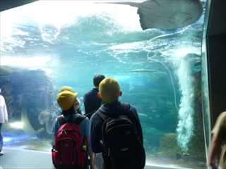 そして、新江の島水族館ではグループ鼓動。イルカショーに歓声。