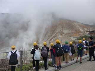 2日目は、箱根大涌谷へ。煙が舞い上がる様子に、自然の壮大さを感じました。