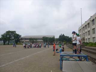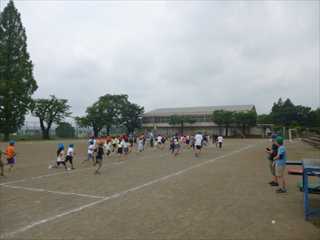 業間休みに、体育委員会による「4択クイズ」が校庭で行われました。トラックのマラソンコースを使って、クイズの答えのところまで制限時間内に走って移動します。楽しみながら、体力向上を目指した企画に、参加した児童も汗をいっぱいかきながら走りぬいていました。