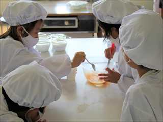 マヨネーズのお話しと、グループごとに自分たちでマヨネーズづくりを体験しました。出来上がったマヨネーズで野菜の試食もしました。