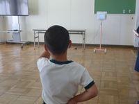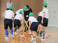 ホッケー教室も3回目となりました。これまでの2回は、雨天のため体育館での活動でした。
