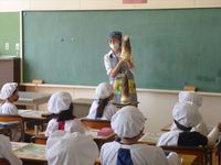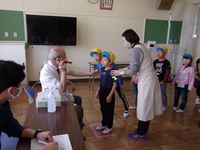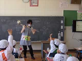 栄養教諭の先生が、給食の時間に給食室の調理の様子についてお話をしてくれました。