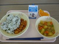 今日の給食は、旬の食材、新じゃがいもを使った「じゃがいものカレー煮」でした。