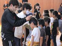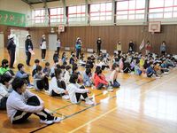 6年生が遊びのルールを説明したり、下級生にやさしく声をかけたりしながら、仲よく楽しくあそべるようにしていました。