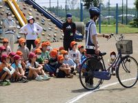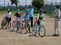 飯能市の生活安全課のみなさんに、安全な横断の仕方や自転車の乗り方を教えていただきました。