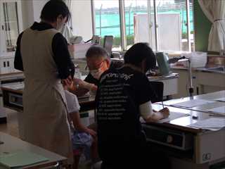地震発生後の身を守る素早い行動と新しい教室からの避難経路を覚えることをめあてに、全児童が真剣に取り組んでいました。