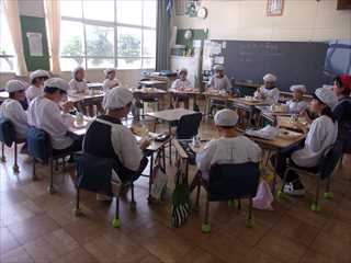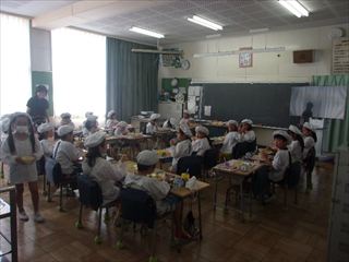 6月始めにはLet's try!精明っ子チャレンジがあり、縦割りグループの仲間との距離も縮まってきました。給食を食べながら、会話も弾んでいました。