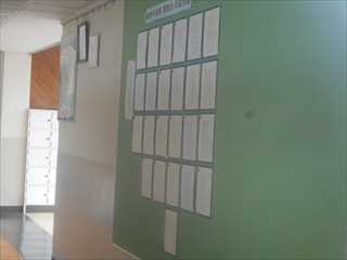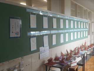 一文字一文字を字形や大きさに気を付けて書くことや中心をそろえて文全体を整えて書くことを目指して取り組んできた子供たちの努力の成果をご覧ください。