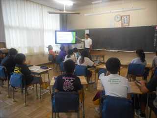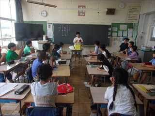 夏休み、8月5日、6日に行われた広島平和記念式典児童等派遣事業に参加した6年生の児童による庫内での報告会が行われました。
