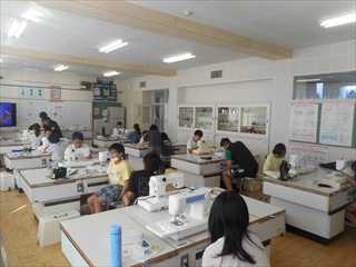 6年生は家庭科でトートバッグづくりが始まりました。今日は久しぶりのミシンで、糸の通し方を思い出しながら進めていました。学習ボランティアとしてお手伝いをしてくださる保護者の方がいて、子供たちは安心して学習していました。