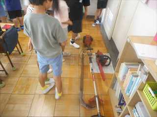 また、実際に下刈りをする鎌や枝を落とす斧等、実際に使われている道具をみせていただき、より深く学ぶことができました。