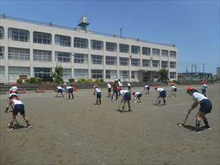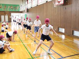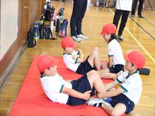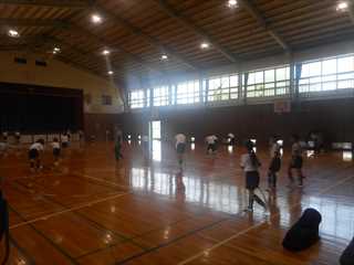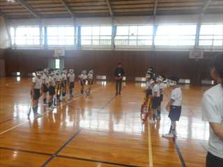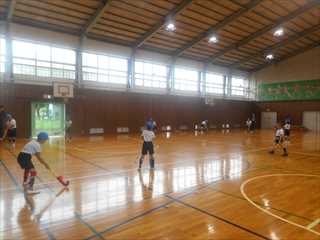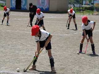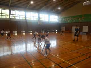 1時間目校庭で予定していたホッケー体験は、体育館へ変更して行いました。休憩を取りながら、熱中症に気を付けて取り組みました。