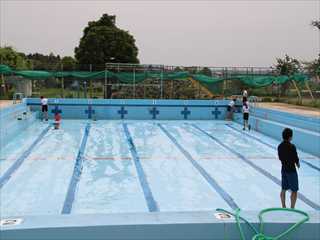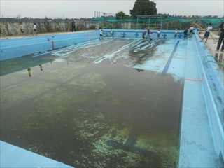 水泳学習に向けて、4年生、5年生、6年生がプール清掃を行いました。