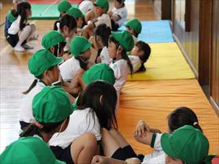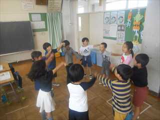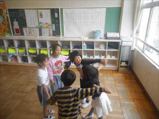 そのあとは、人数を増やしながら手をつないでかっつむりの歌をみんなで楽しく歌いました。