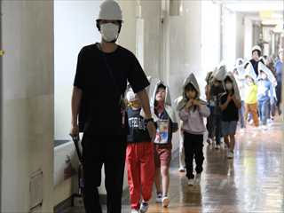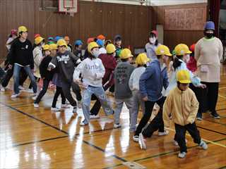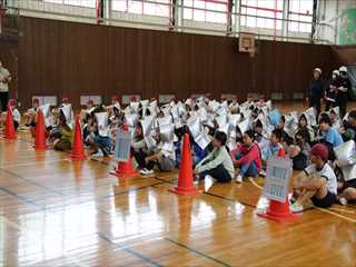 放送を聴いて素早く静かに行動し、体育館に避難しました。