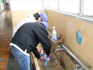 地震発生後、校内から火災が発生したことを想定した訓練です。