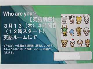 3年生になって学び始めた外国語活動で、朗読劇を発表してくれました。大きな声ではっきりとした声で、英語の発音もよく、成長した姿を見せてくれました。