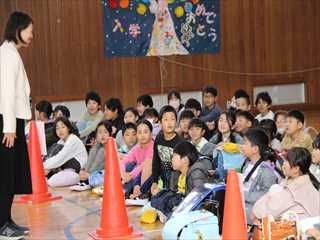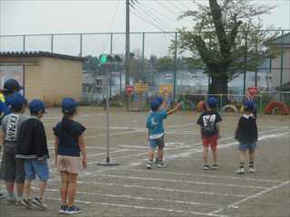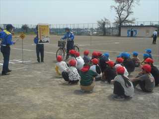 1年生は初めての交通安全教室。道路の横断の仕方や歩道の歩き方等、大切なことを学習しました。