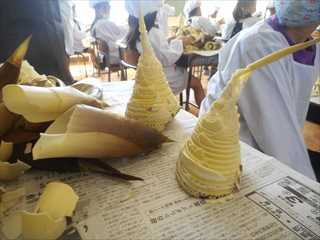 たけのこのかおりいっぱいの教室で、一枚一枚皮をむいていました。中から白くてやわらかいたけのこが見えると、嬉しそうにむいている子供たちの表情が素敵でした。