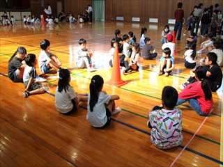 朝活動の時間に、縦割りグループ開きがありました。今年度の縦割りグループの仲間が初めて顔合わせをしました。