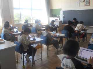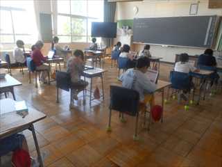 昨年からタブレットによる調査となり、子供たちは、国語、算数、質問調査に取り組みました。