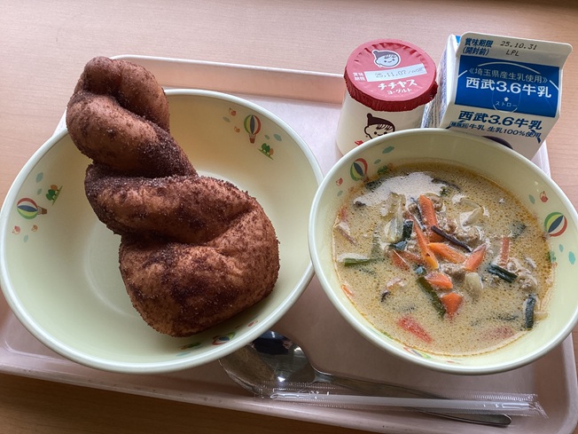 ・子供たちが楽しみにしている揚げパン。 やっぱり今日の“ココア揚げパン”はダントツの人気です。